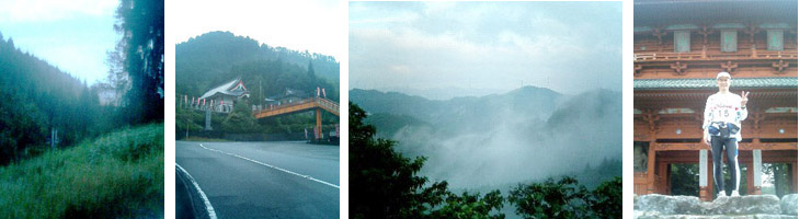 | 午前5時を過ぎた頃、梨子ノ木峠入り口あたりからだんだんと明るくなってきた。ここの登りは相当きつく、毎回歩いてしまう。この峠を下れば高野町に入り、また新たな登りが始まる。あと高野山大門に向けての7キロの登り、この登りはカーブこそ多いがきつい坂ではなく、調子がよければ走って登れる。早朝のせいもあり観光シーズンにもかかわらず以外に車が少なかった。ガードレールの上に距離表示があり、登り口の8から目標の大門前の17までを数字が増えるのを楽しみにただひたすらカーブを曲って行くと大門に辿り着いた。 | ||||||||||||||||||||||||||||||||||||