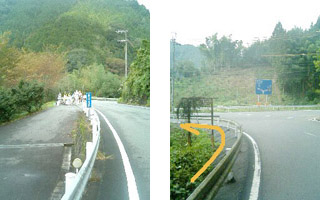 | 黒川峠の入り口 3:21 | 所々にある自販機 | 公衆電話 | 35km地点エイド 5:17 | |||||||||||||||||||||||||||||||||