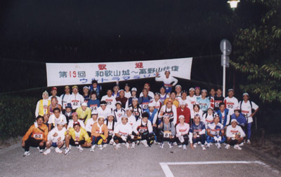 スタート地点は八代将軍吉宗の誕生の地、和歌山城 追廻門まえ、 4、50人のマラソンランナーが午前0時を合図に一斉に走り出した。私と3人のマラソン仲間も同時刻にスタートした。このマラソンは紀州路を楽しむという主旨のもと開催された大会で、午後6時まで帰ってくれば 0時、1時、2時、3時、4時、5時いずれのスタートでもよく、自分の脚力しだいでの出発となる。2、3時間前にはかなり激しく降っていた雨もスタート時にはやや小降りになり、みなそれぞれの雨具での走り出しとなった。しかし、五分も走らないうちにまた雨がひどくなり、5キロ地点ではもう靴の中はぐちょぐちょの状態・・。予報では午前3時頃から曇りとのこと。予報が当たる事を祈りながら、心泊数が上がらないようにただひたすら走った。10キロ過ぎ、道路わきの凹みに足を取られ、軽いねんざをしてしまった。しかし「ねんざは走って治せ」と誰かがいっていたなと思い出し、足首を真直ぐ着地することを心がけながら走った。スタートから20キロ、岩出町から桃山町に入る地点にあるローソンが最後のコンビニになる。ほとんどのランナーがここで小休止をとる。 ここが街から山への入り口となり、登り道がはじまるのだ。この時間帯の登りのランは疲労度が特に増す。ここ迄来るとひと固まりだったランナーはまばらになり、前後に誰もいなくなってしまう。遠くにランナーのライトがゆらゆらと見えるだけだ。この真っ暗な山道は私が初心者だった頃には寂しく、そして怖くもあった。今の様に馴れると月明かりの下で山道を走るのはとても気持ちが良いのだが、今回のように雨だとかなり気が滅入ってくる。この大会は今回で7、8回目だが雨に降られるのは2回目だ。午前3時前には予報通りに雨はあがり、星もまばらに見える様になってきた。時折、主催者側の車が追い抜きざまに声をかけてくれるので独りでないことを確認できる、今年はこの時期にしては寒くなく、暖かかった。 |
